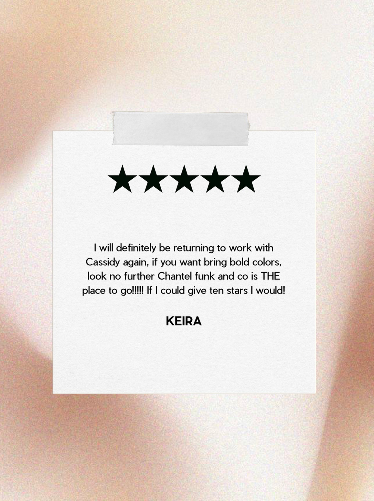 Whether you're going for a soft glow-up or a bold transformation, our expert stylists are here to create your perfect look — all while you enjoy the elevated, personalized Chantel Funk & Co experience.